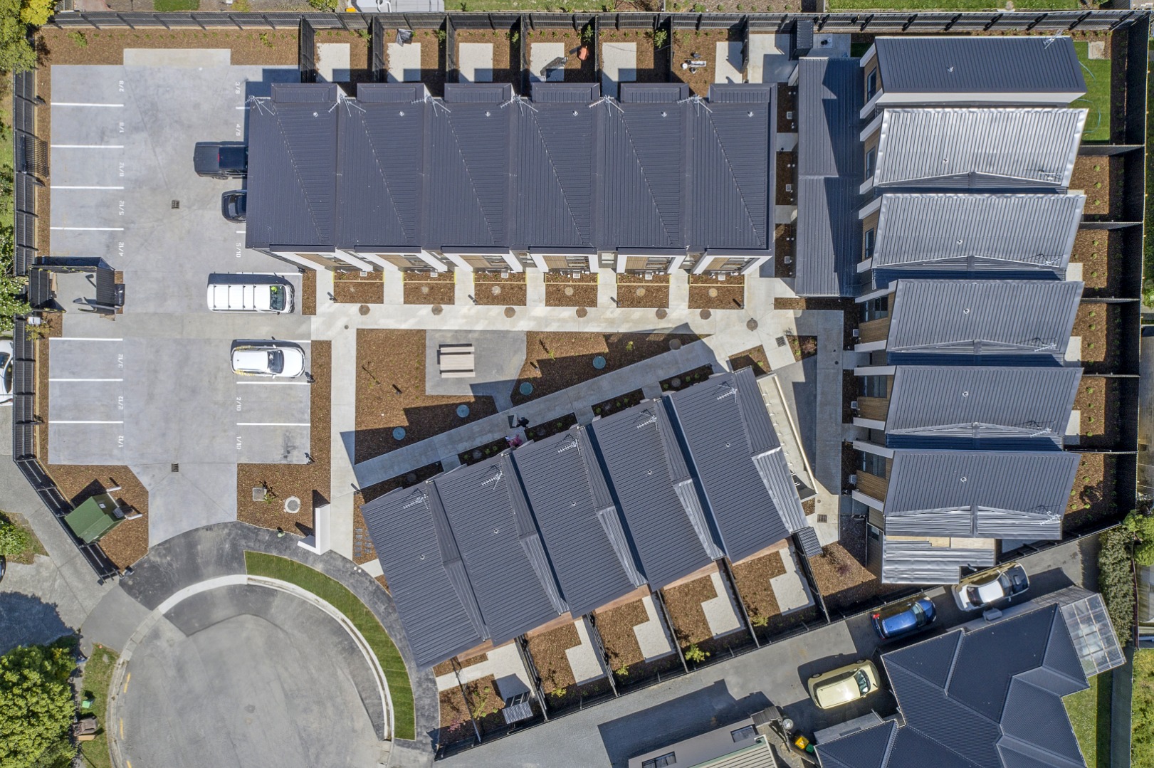 The 3-bedroom units are designed overthree levels. On the ground floor you will find an open plan kitchen and dining area, with an L shaped kitchen to maximise space, the living area opens to a timber deck and beautifully landscaped area to enjoy the sunny mornings in. On the second floor, there is one double bedroom with the main bathroom, storage space and a washing cupboard. The third floor holds the remaining two double bedrooms, with an ensuite in the master. There is also ample storage space in this area.