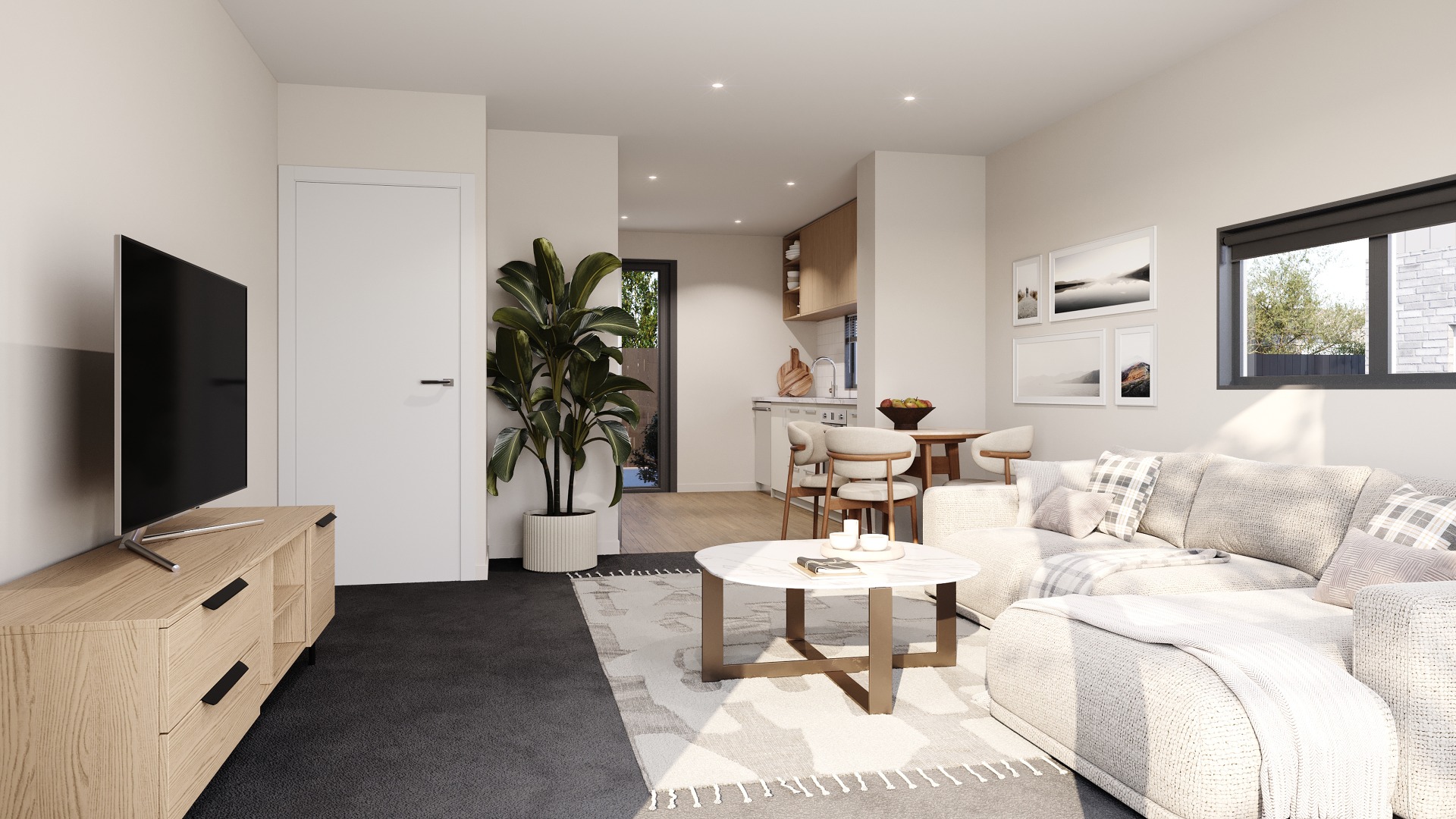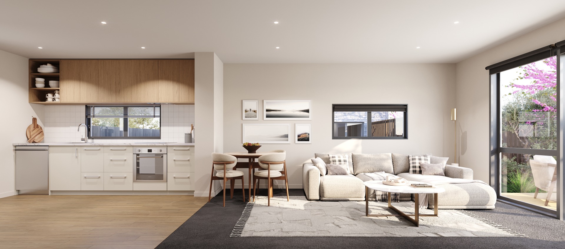 • Open plan kitchen and living area flowing to a private, secure courtyard