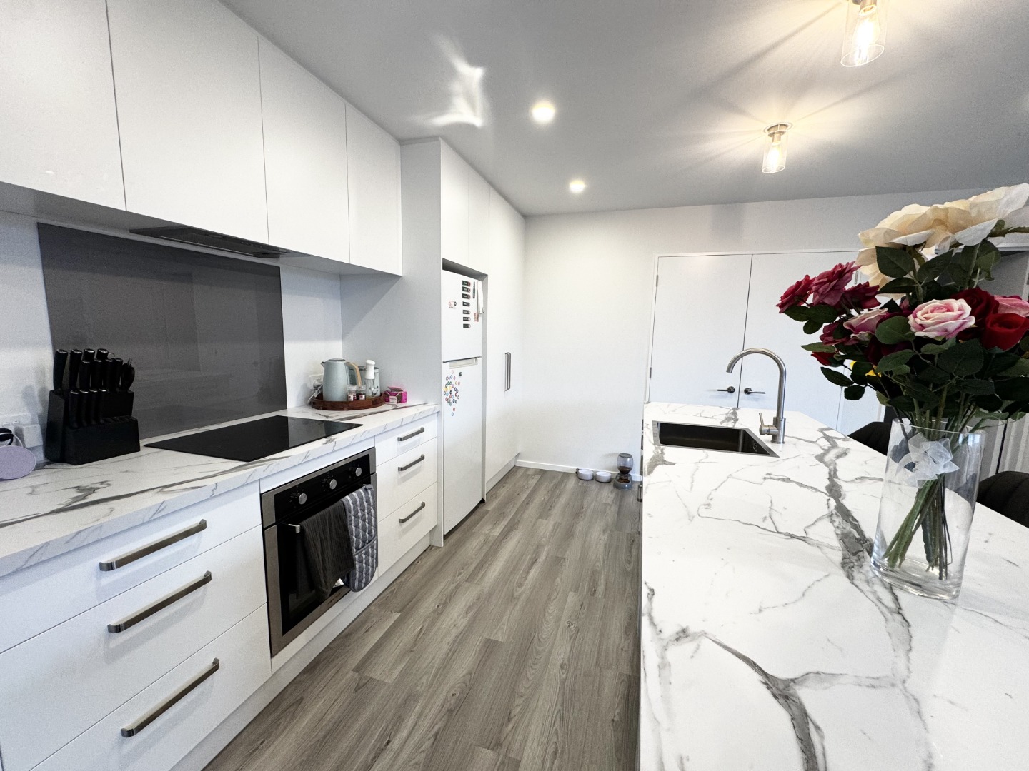 · Modern kitchen featuring quality benchtops, tiled splashback, and premium appliances