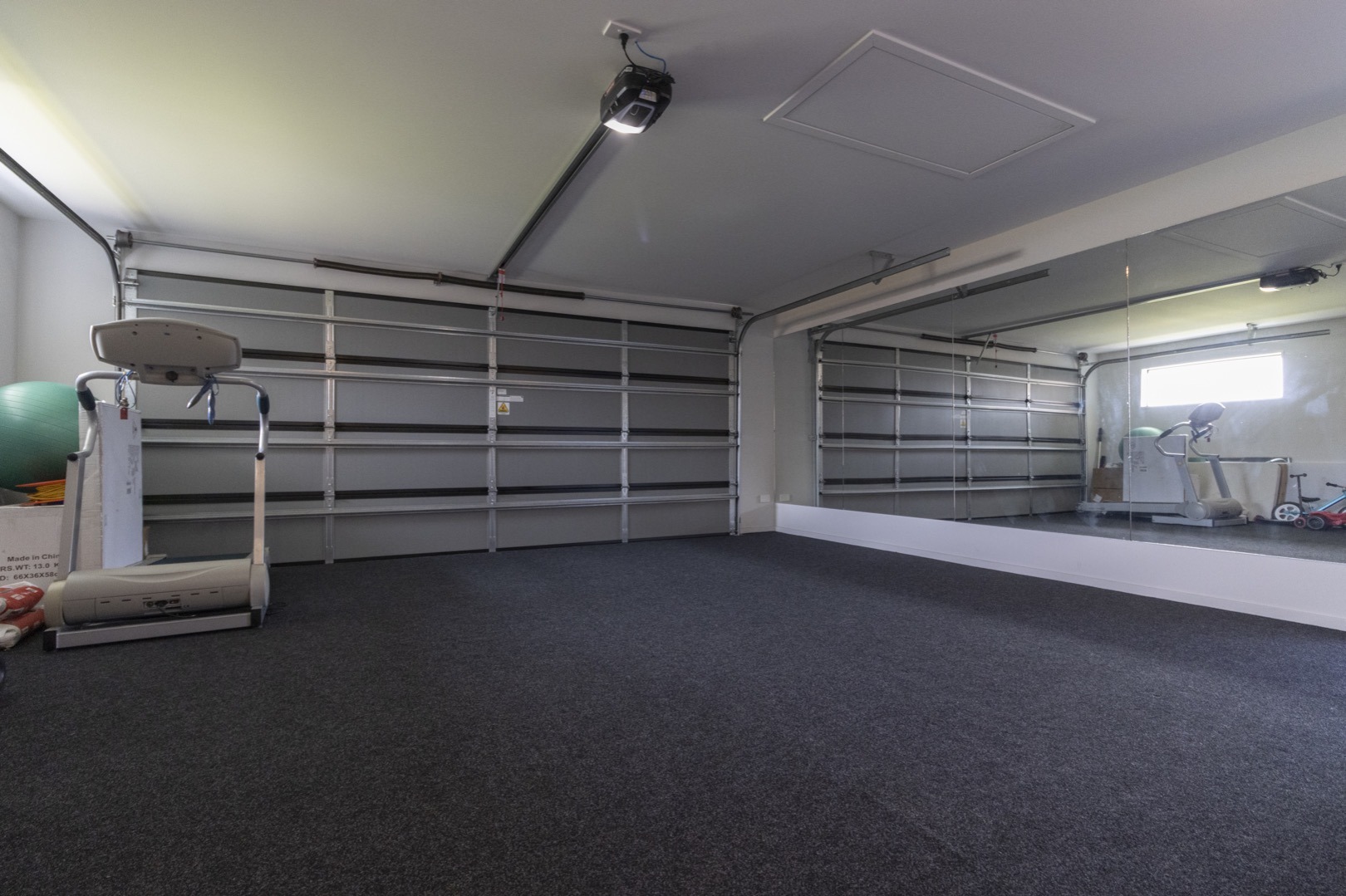 • The double garage has been designed for an active family, and the wall-to-wall mirror provides the environment for the home gym, the modern dancer, or ballet recital practice.