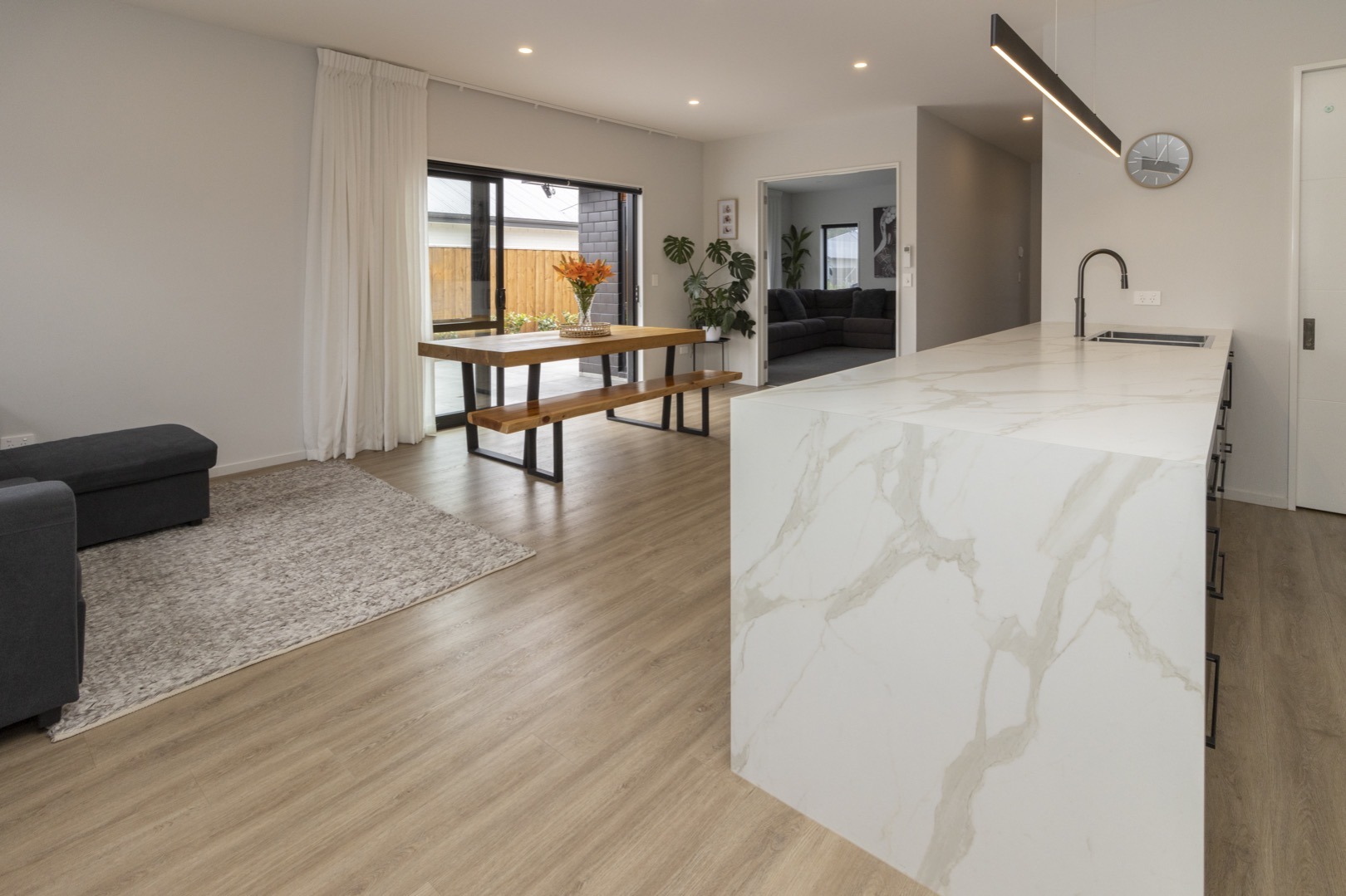 • The open-plan living area flows onto a sun-drenched patio overlooking the saltwater pool