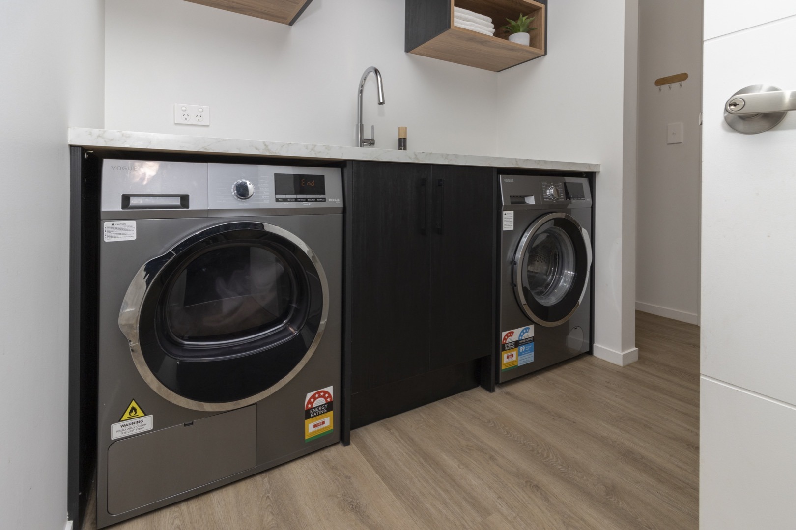 • Quality appliances including a fridge freezer, washing machine and dryer combo.