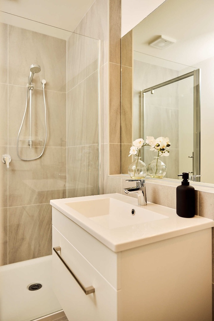 All townhouses are split level and include modern European-Styled appliances, such as microwave, dishwasher, fridge/freezer, stainless steel oven & hob with stainless steel extractor hood and combination washing machine & dryer. All two-bedroom townhouses are provided a one onsite bay per property.