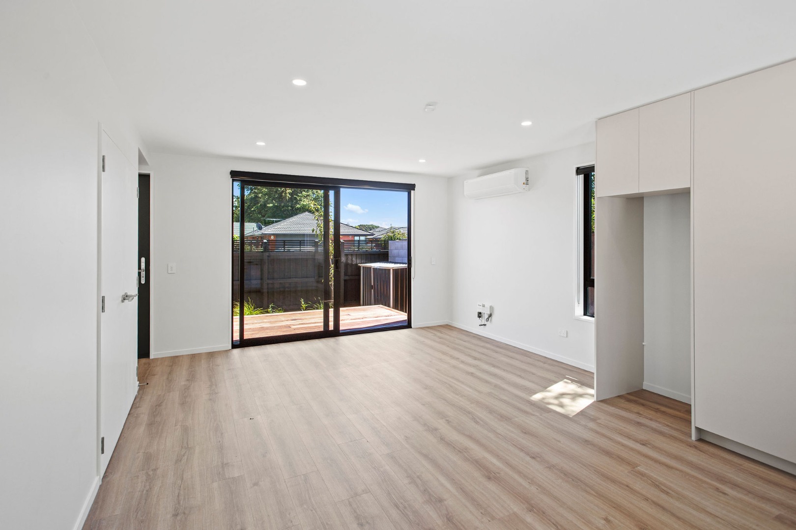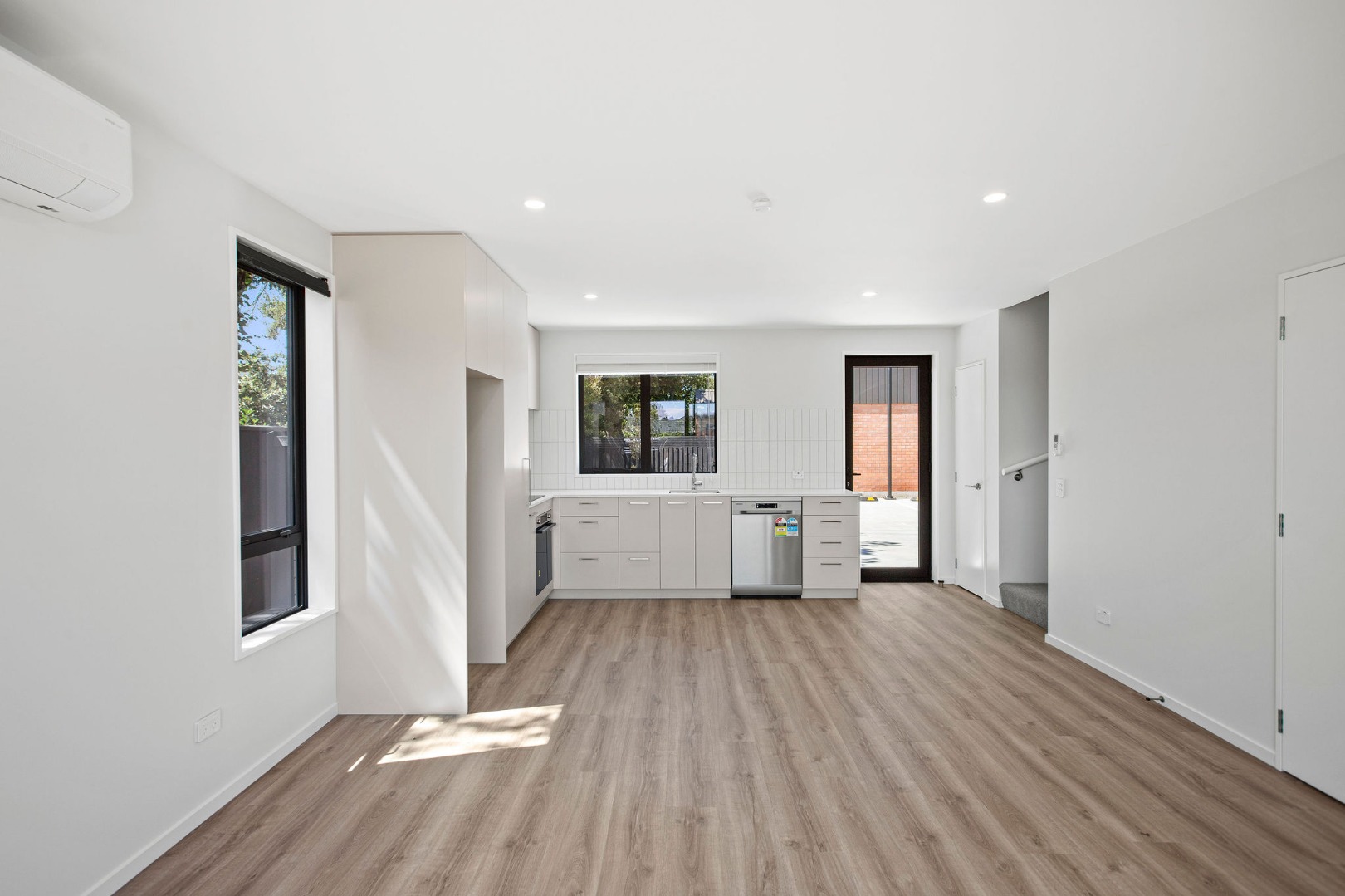 · Open-plan kitchen, dining, and living area flowing to a private outdoor yard