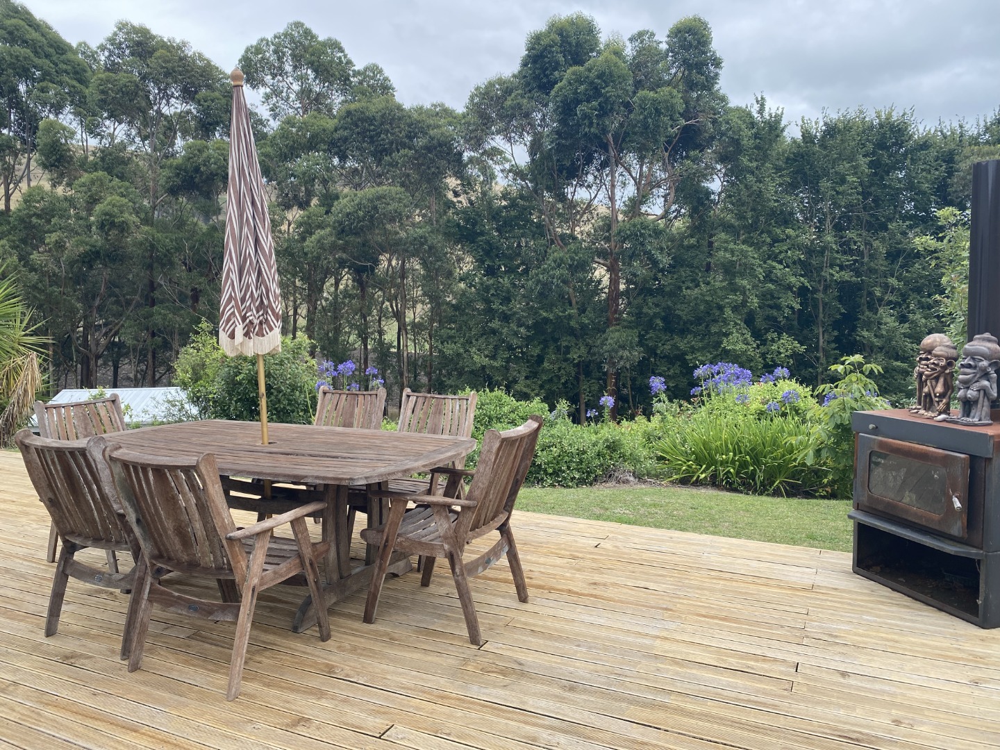 This lovely 'scandi' style property shares the same drive (through a secure gated entrance) as the owner, but private in all other ways. Featuring two double bedrooms, with quality furnishings including the pots / pans / cutlery etc and all appliances. The interior has timber plywood paneling throughout; air conditioning for the summer sizzle or the cooler winter evenings. Plenty of carpet through out. Just bring your personal linen!!