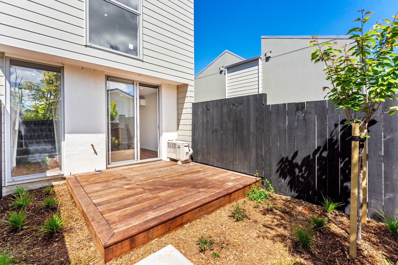 Architecturally designed 2-bedroom townhouse. Inside you’re greeted with the open plan kitchen and living area. The stylish yet functional kitchen is designed as an L-shape which is perfect for cooking together. There’s a breakfast bar for dining, and the kitchen features quality, modern finishes.